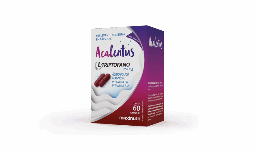 Acalentus L-Triptofano é um suplemento alimentar composto por L-Triptofano, ácido fólico, magnésio, vitamina B6 e vitamina B12.